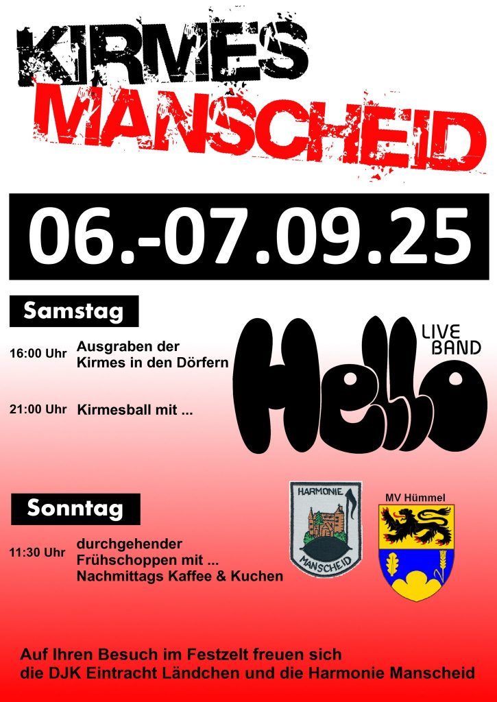 Die DJK Eintracht Ländchen und die Harmonie Manscheid freuen sich auf euren Besuch im Manscheider Festzelt!